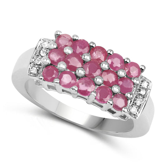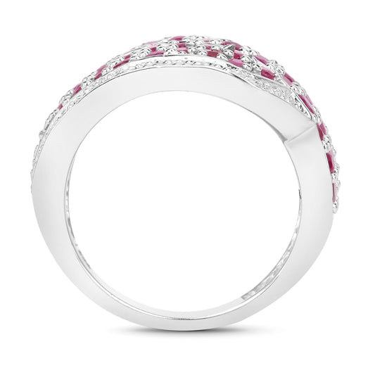 Genuine Ruby Rounds Cluster Band Ring in Sterling Silver