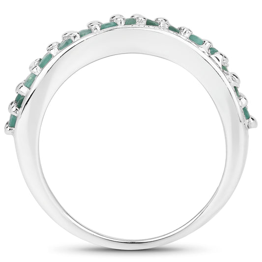Genuine Emerald and White Topaz Sterling Silver Graduated Ring