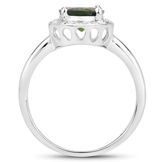 Genuine Chrome Diopside and White Topaz Sterling Silver Halo Ring