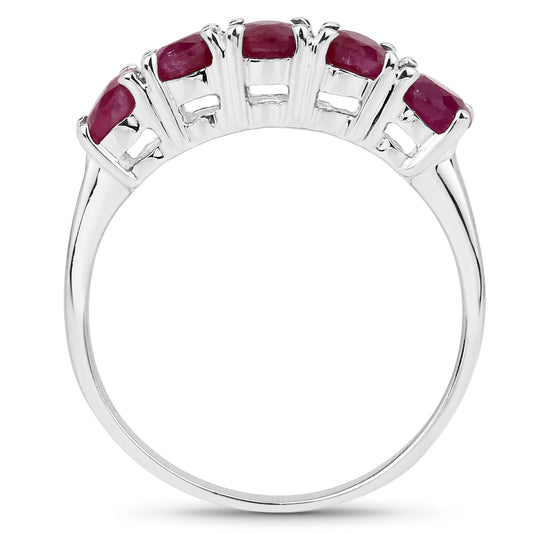 Genuine Ruby Sterling Silver 5-Stone Ring