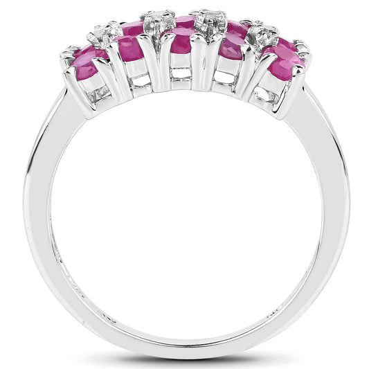 Genuine Ruby and White Diamond Sterling Silver Band Ring