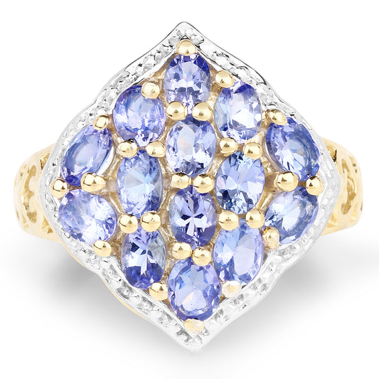 Genuine 14K Yellow Gold Plated Tanzanite Sterling Silver Ring