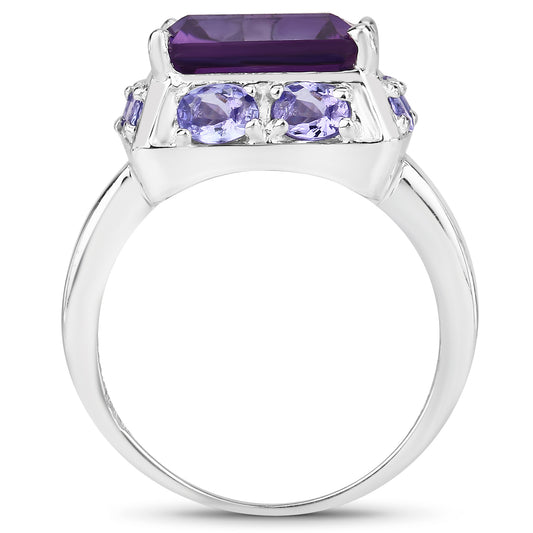 Genuine Amethyst and Tanzanite Sterling Silver Halo Ring