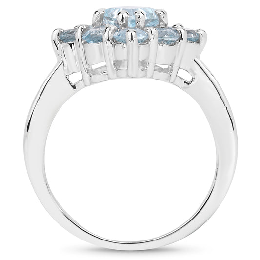 Genuine Blue Topaz Sterling Silver Cluster Ring
