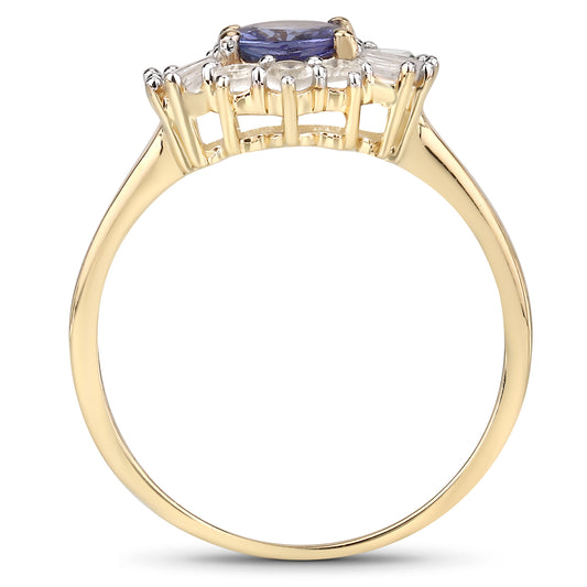 Genuine 14K Yellow Gold Plated Tanzanite and White Topaz Sterling Silver Ring
