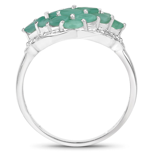 Genuine Emerald Marquise and White Topaz Sterling Silver Cluster Ring