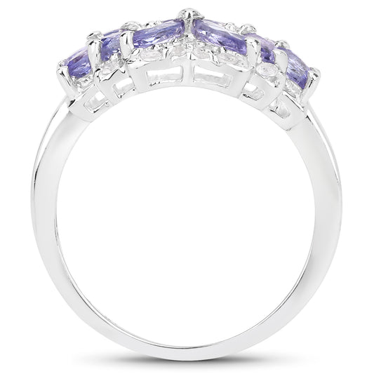 Genuine Tanzanite and White Topaz Sterling Silver Ring