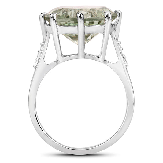 Genuine Green Amethyst, White Topaz and White Diamond Sterling Silver Ring