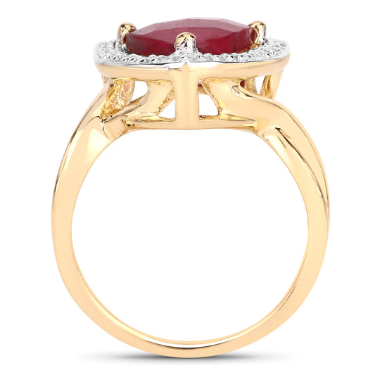 14K Yellow Gold Plated Dyed Ruby and White Topaz Sterling Silver Ring