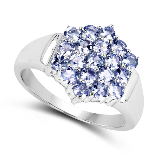 Genuine Tanzanite and White Topaz Sterling Silver Cluster Ring