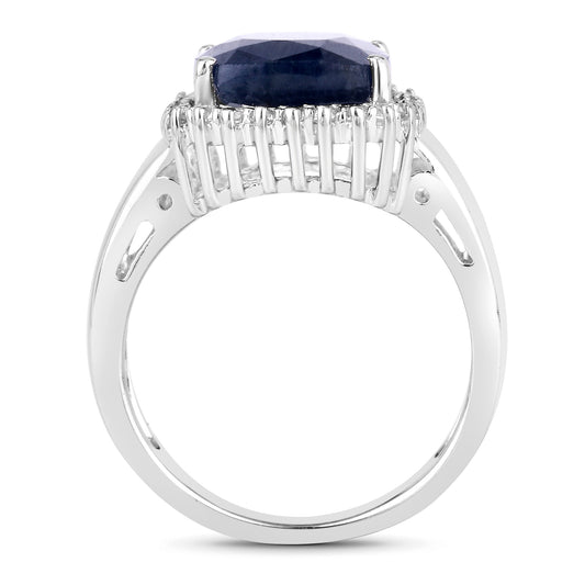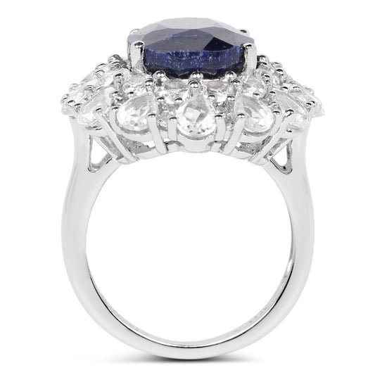 Dyed Blue Sapphire and White Topaz Sterling Silver Statement Ring
