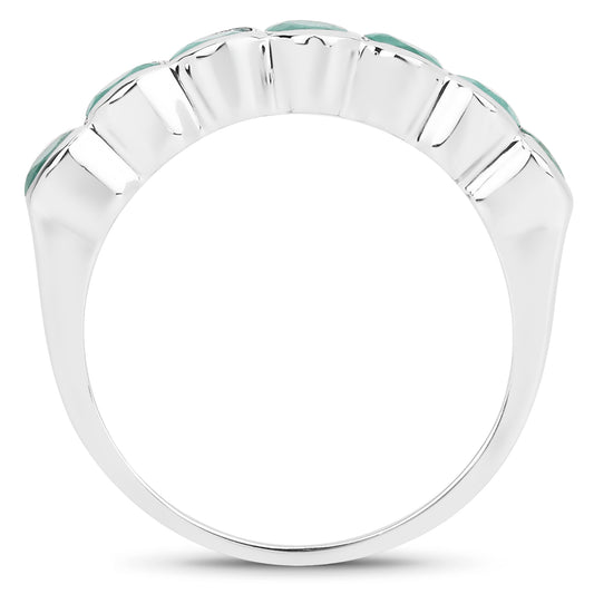 Genuine Emerald and White Topaz Sterling Silver Graduated Ring
