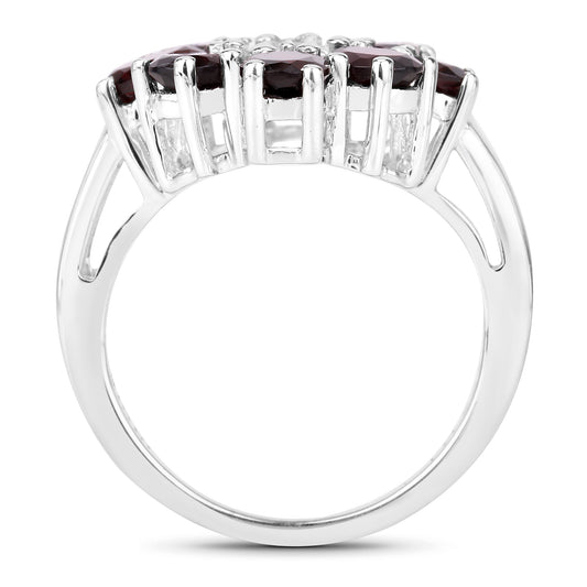 Genuine Garnet and White Topaz Sterling Silver Floral Ring