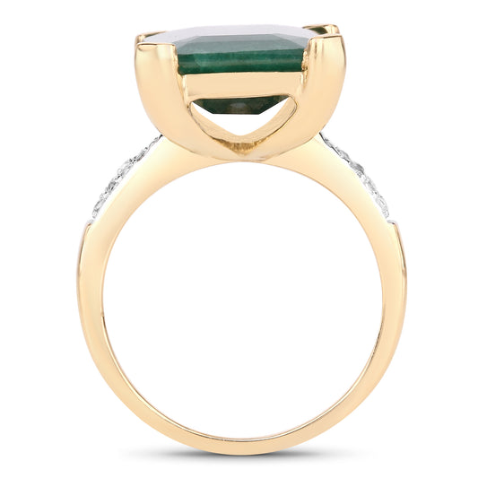 14K Yellow Gold Plated Plated Dyed Emerald and White Topaz Sterling Silver Ring