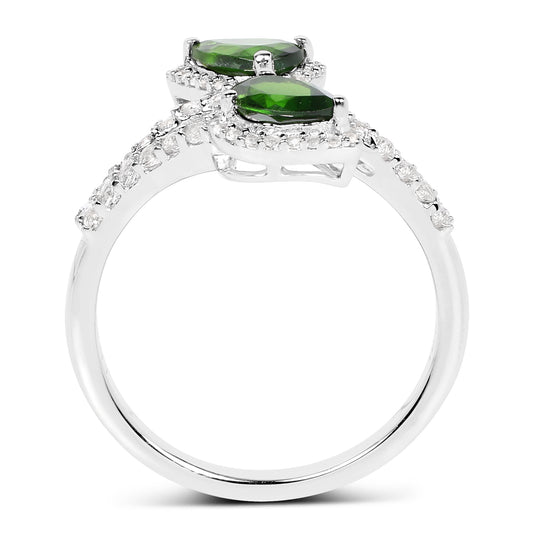Genuine Chrome Diopside and White Topaz Sterling Silver Ring