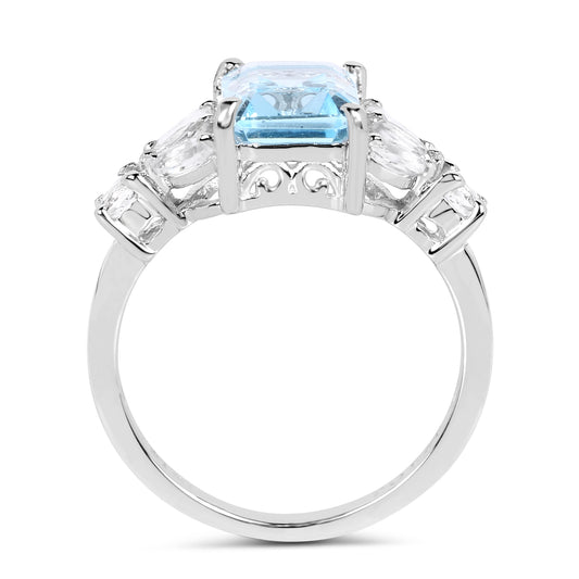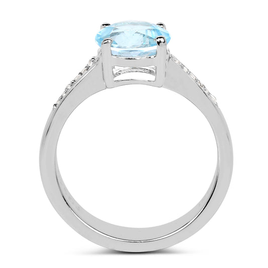 Genuine Blue Topaz and White Topaz Sterling Silver Bridge Ring