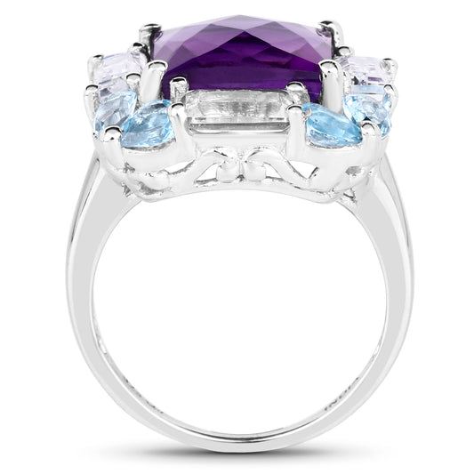 Genuine Amethyst, Swiss Blue Topaz and White Topaz Sterling Silver Ring