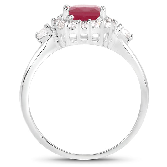 Glass Filled Ruby and White Topaz Sterling Silver Graduated Ring