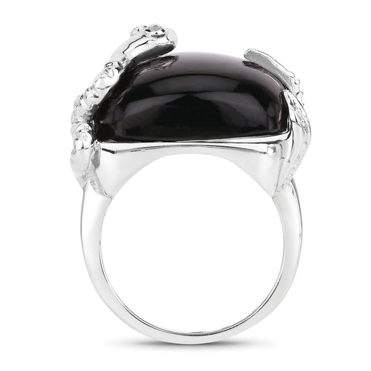 Genuine Black Onyx and White Topaz Sterling Silver Snake Ring