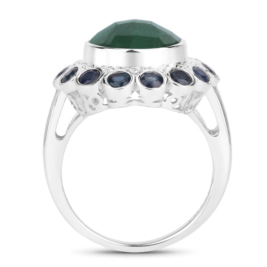 Dyed Emerald and Blue Sapphire Sterling Silver Halo Ring
