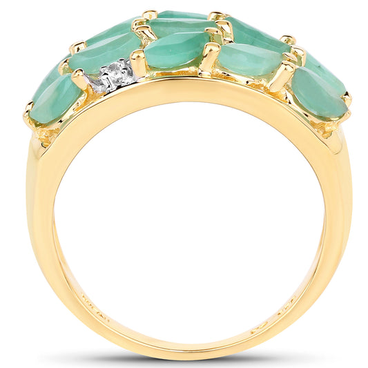 Genuine 14K Yellow Gold Plated Emerald and White Topaz Sterling Silver Ring