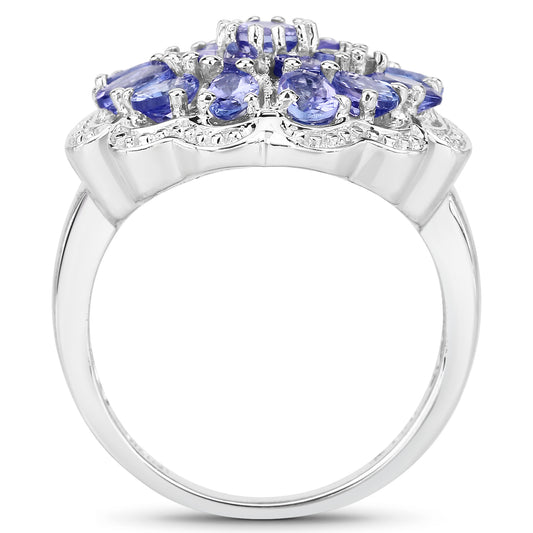 Genuine Tanzanite Sterling Silver Cluster Ring