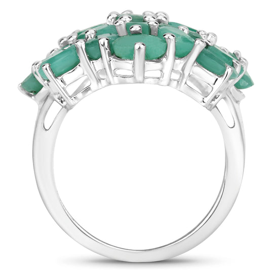 Genuine Emerald and White Topaz Sterling Silver Fancy Ring