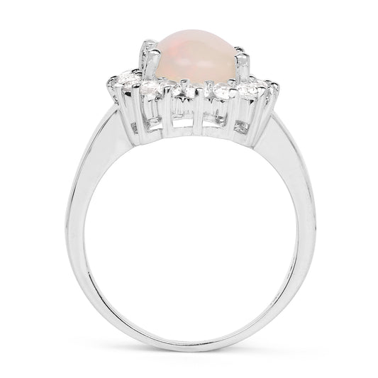 Genuine Ethiopian Opal and White Topaz Sterling Silver Graduated Ring