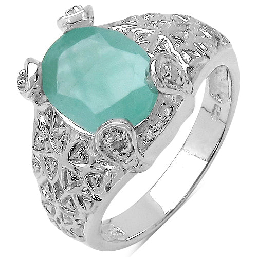 Genuine Emerald and White Diamond Ring in Sterling Silver