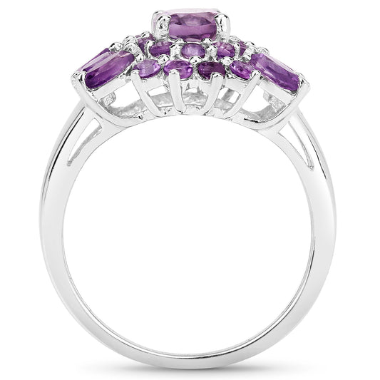 Genuine Amethyst Cluster Ring in Sterling Silver