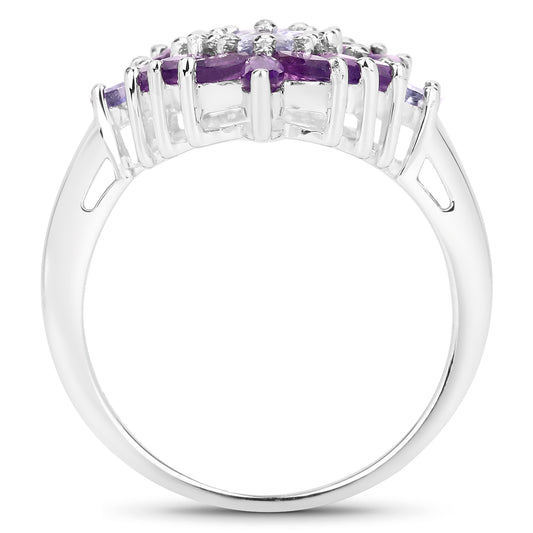 Genuine Amethyst and Tanzanite Sterling Silver Graduated Ring