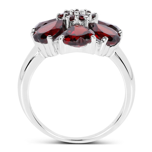 Genuine Garnet Sterling Silver Floral Ring