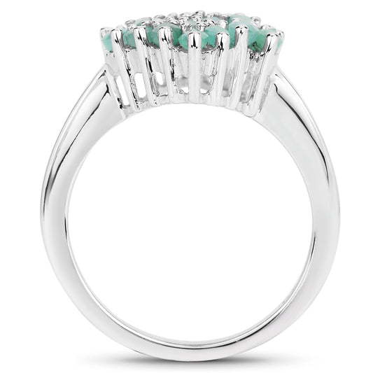 Genuine Emerald Sterling Silver Cluster Ring