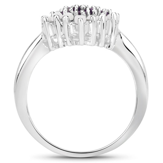 Genuine Amethyst and Tanzanite Sterling Silver Cocktail Ring