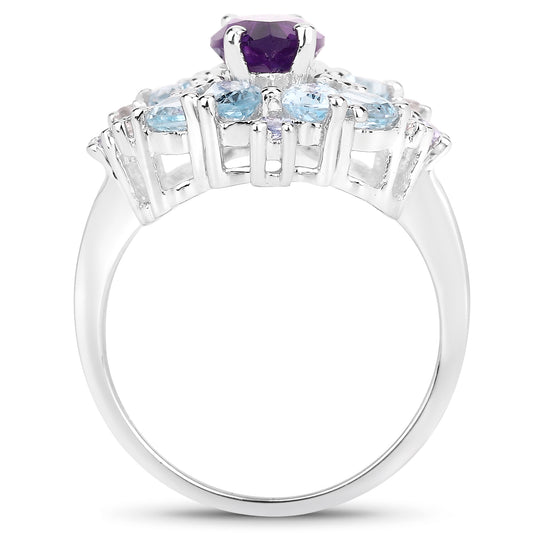 Genuine Amethyst and Blue Topaz Sterling Silver Ring