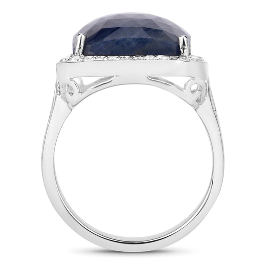 Genuine Blue Sapphire and White Topaz Sterling Silver Ring