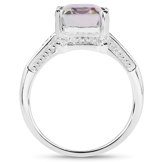 Genuine Rainbow Topaz and White Diamond Sterling Silver Ring