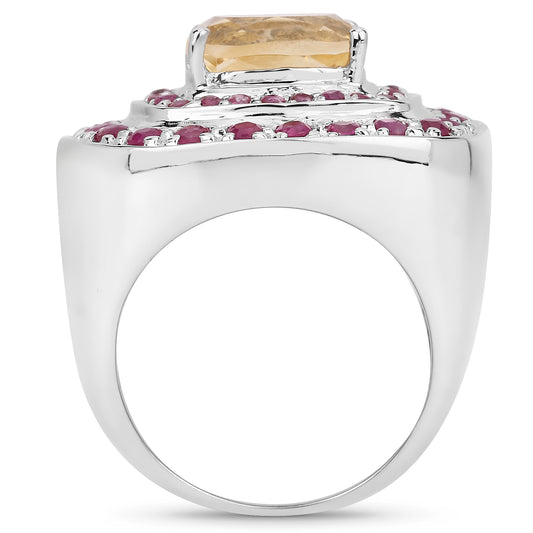 Genuine Citrine and Ruby Sterling Silver Halo Ring