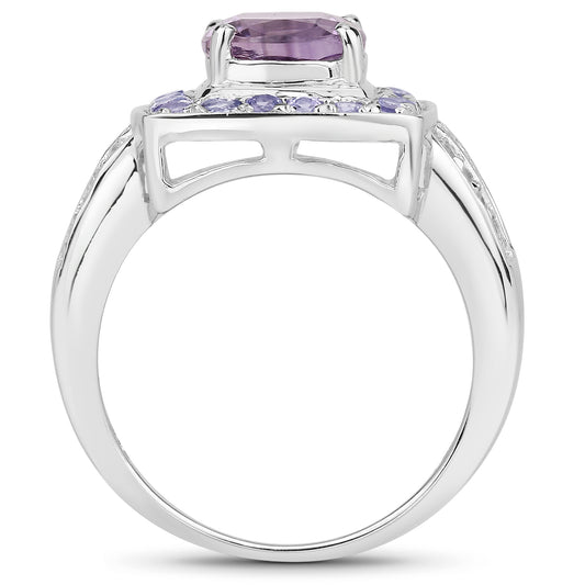 Genuine Amethyst, Tanzanite and White Topaz Sterling Silver Graduated Ring
