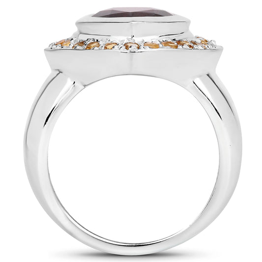 Genuine Garnet Heart-Shap and Citrine Sterling Silver Ring