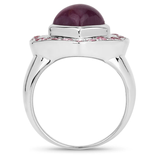 Genuine Heart-Shap Ruby and Rhodolite Garnet Sterling Silver Ring