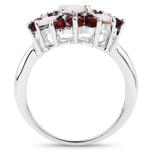 Genuine Amethyst and Rhodolite Sterling Silver Floral Ring