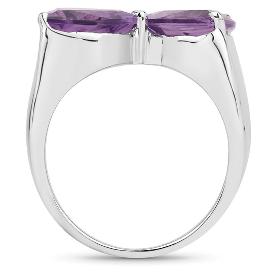 Genuine Amethyst Sterling Silver 3-Stone Ring