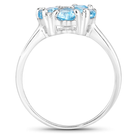 Genuine Swiss Blue Topaz and White Topaz Sterling Silver Floral Ring