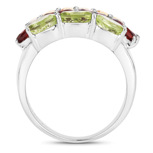 Genuine Peridot and White Diamond Sterling Silver Band Ring