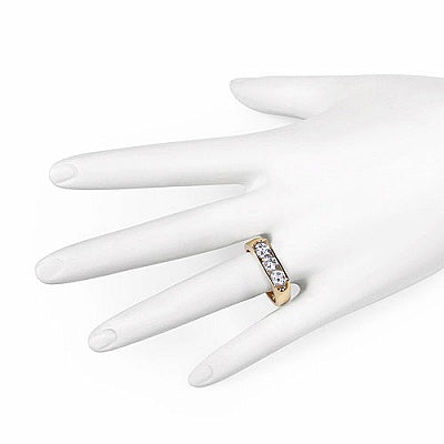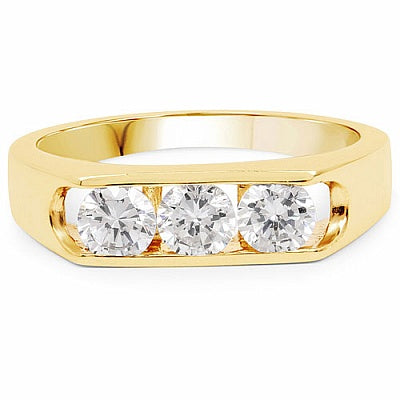This 1.70 carat white cubic zirconia ring showcases a minimalist three-stone design, crafted in high-quality .925 sterling silver with a gleaming gold plating. The simplicity of the design is enhanced by the brilliance of the cubic zirconia stones, making this ring a versatile and timeless accessory. Whether worn for a formal event or to elevate your daily style, this ring exudes understated elegance.
