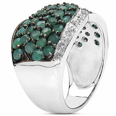 3.31CTW Genuine Emerald & White Topaz .925 Sterling Silver Cluster Ring