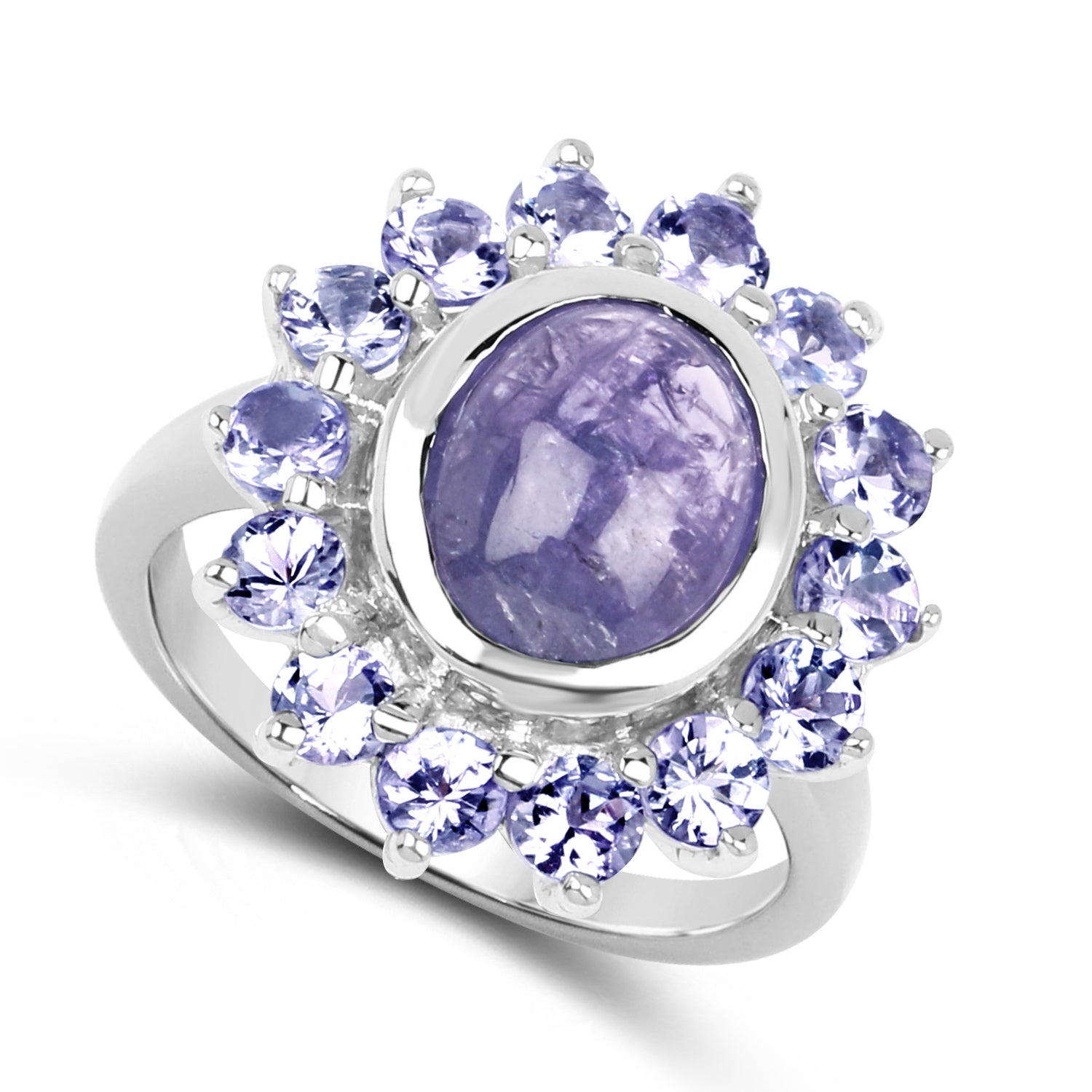 Elevate your style with this 4.95-carat tanzanite sterling silver ring, featuring a vibrant oval tanzanite as the centerpiece. Surrounded by a delicate halo of smaller tanzanite stones, this ring captures the essence of refined glamour. Its bold, yet elegant design makes it an ideal accessory for special occasions or as a dazzling addition to your everyday look.