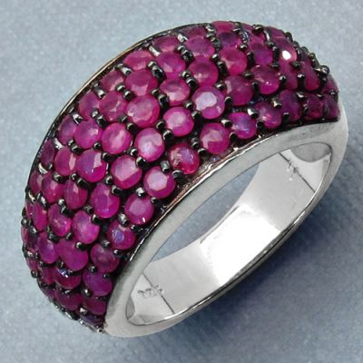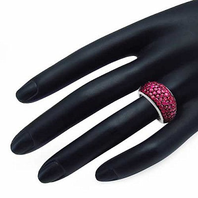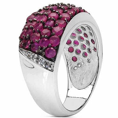 Bask in the allure of vibrant rubies with this exquisite 3.80CTW cluster ring. Each rich, red gemstone is meticulously set in high-polished .925 sterling silver, forming a dome of captivating brilliance. Tiny white diamonds add a delicate shimmer to this already dazzling piece, enhancing its luxury appeal. Ideal for special occasions or daily wear, this ring promises to be a standout addition to your jewelry collection, offering a timeless and bold statement.