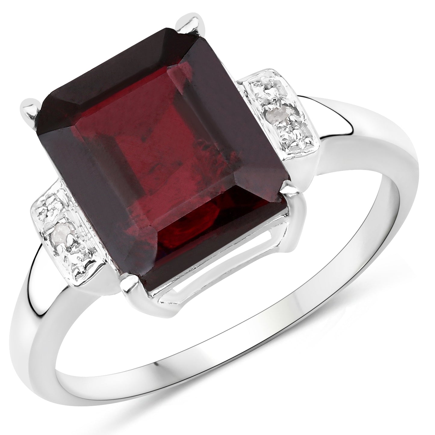 Genuine Hydrabadi Garnet and White Diamond Sterling Silver Graduated Ring